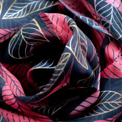 De plus, le motif de feuillage s’inspire de la nature, ajoutant une touche organique et moderne à votre look. Chaque feuille est soigneusement dessinée, créant un contraste harmonieux avec le fond en soie.